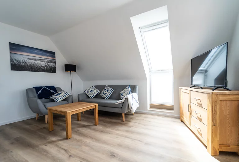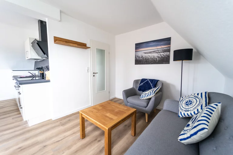 Unsere 2021 frisch sanierte über 50 qm große Feriewohnung mit Dachterrasse bietet Ihnen alle Annehmlichkeiten, die es für einen erholsamen Urlaub braucht. Die unmittelbare Nähe zum weitläufigen Nordstrand (2 Gehminuten) lädt zum Baden, zu Spaziergängen entlang der Wasserkante oder ausgibigen Fahrradtouren an der Promenade ein. Kultur- und Seefahrbegeisterte dürfen sich über die Aussicht auf den Neuen Leuchtturm, das Große sowie das Kleine Kaap freuen.